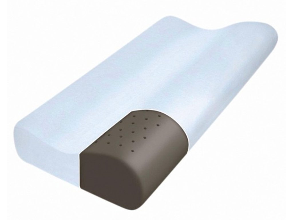 Anatomicky tvarovaný polštář z paměťové pěny s příměsí bambusového uhlí.