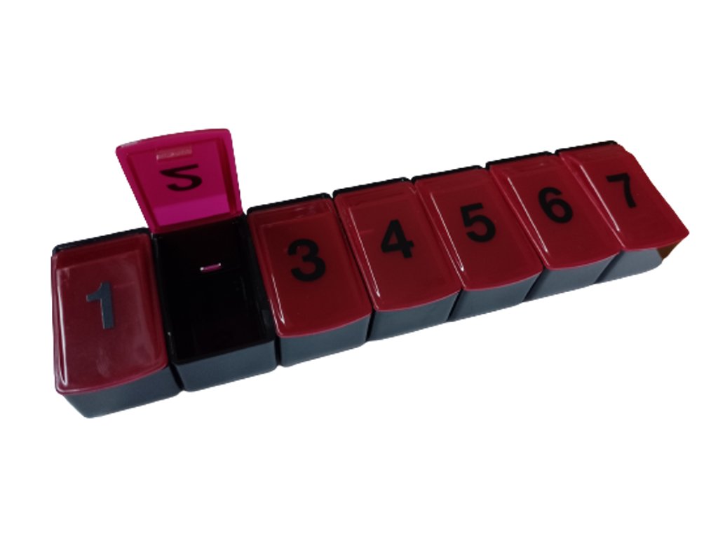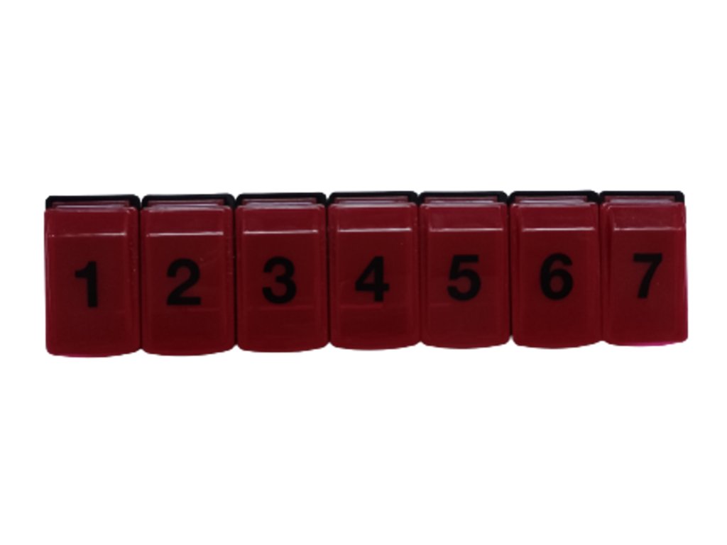 Každý ze sedmi zásobníčků představuje jeden den v týdnu a je také řádně označen číslem.