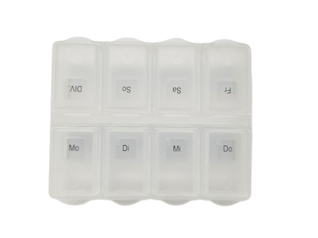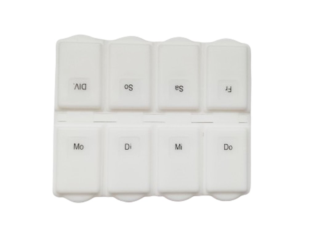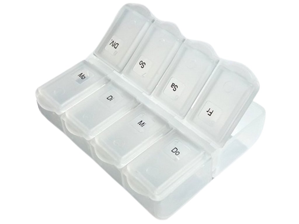 - Praktický plastový zásobník na léky na celý týden se skládá ze sedmi zásobníků a jednoho záložního.