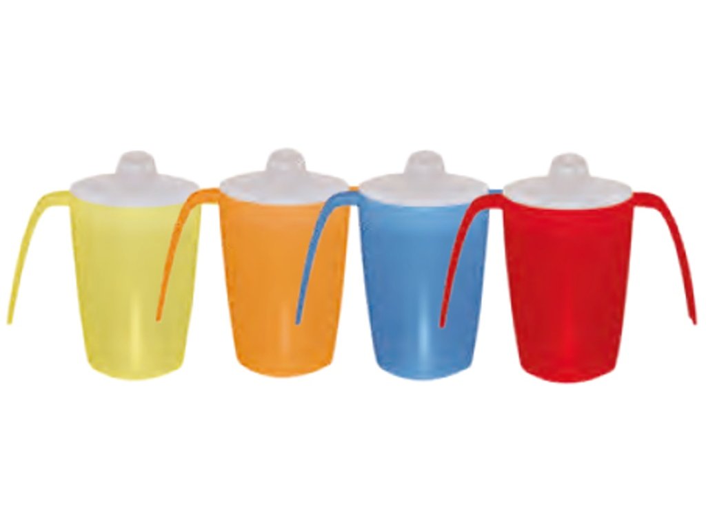 Hrnek se dvěma uchy, víčko na pití a řídké pokrmy, 220 ml, různé barvy