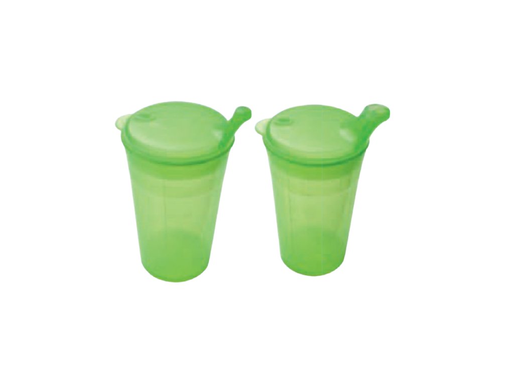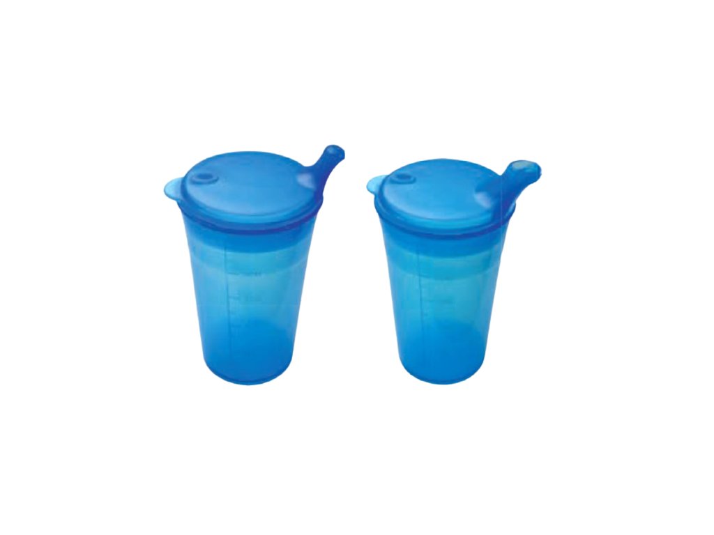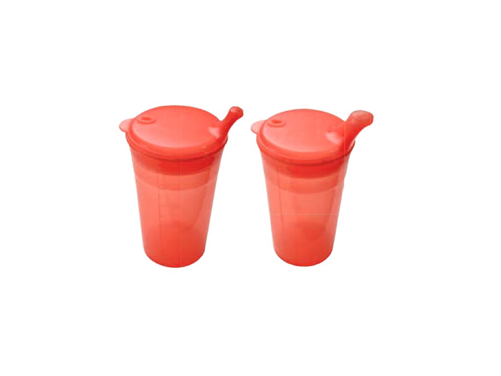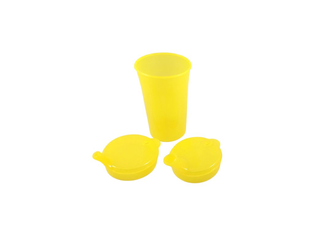 - Tento plastový hrnek je dodáván se dvěma víčky s různě širokými-krátkými náustky.