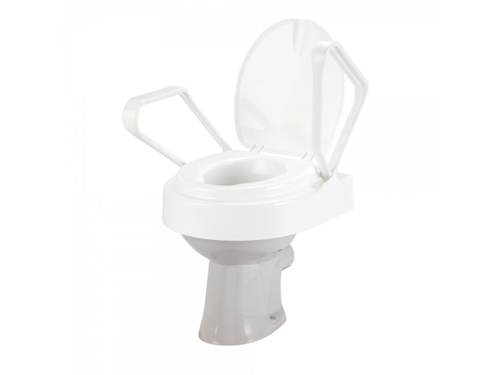 Univerzální toaletní nástavec s poklopem a odklopnými madly.
