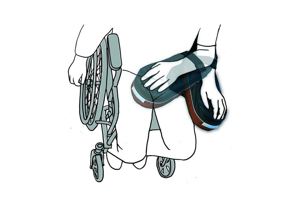 Antidekubitní podložka pod loket pro hemiplegiky do vozíku